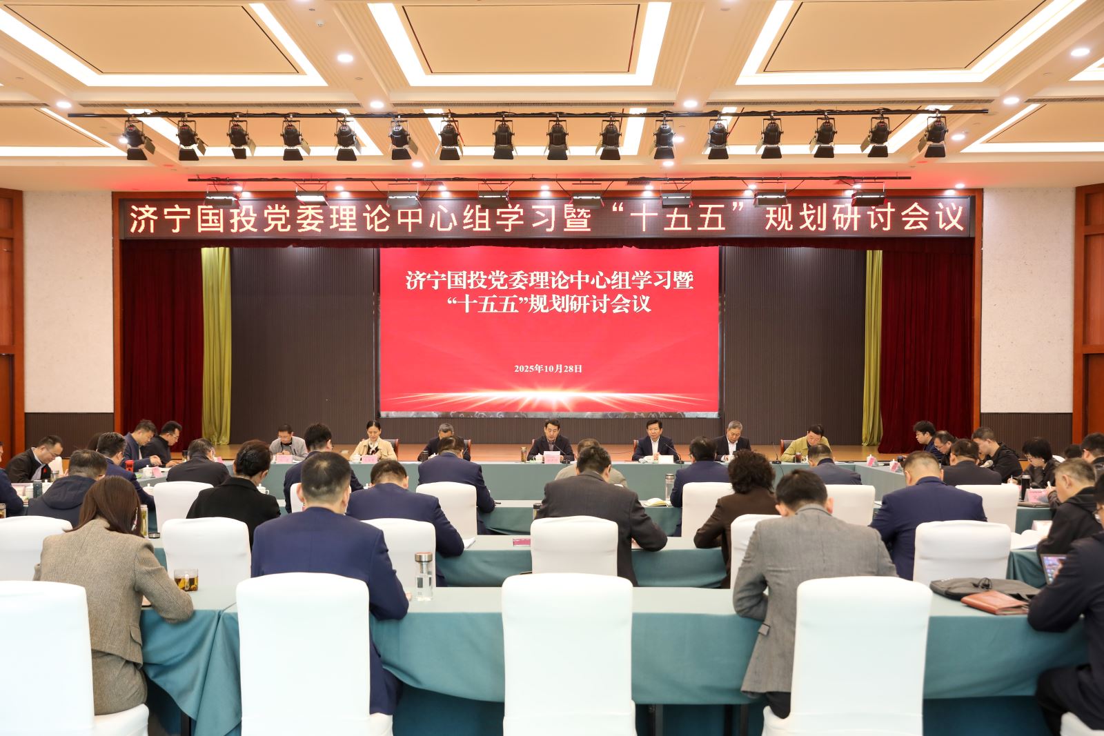 10月28日,济宁国投召开党委理论中心组学习暨“十五五”规划研讨会议,深入学习贯彻党的二十届四中全会精神,集中研讨公司“十五五”规划编制工作,进一步统一思想、凝聚共识,为推动公司高质量发展奠定坚实基础。济宁国投党委书记、董事长虢洪增主持会议并讲话。